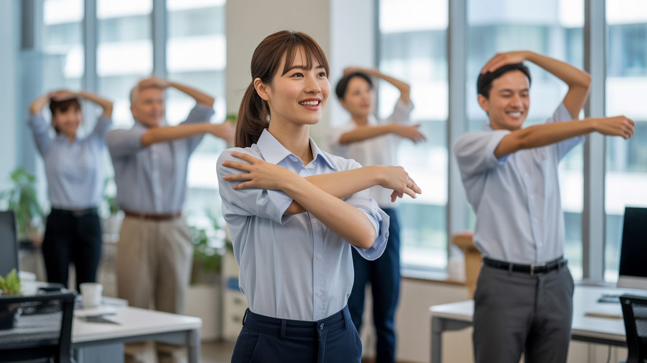 一言で言うと、「よく練られた3分のストレッチを”会社の習慣”にすること」が、健康経営と生産性向上の両方に効くコツです。